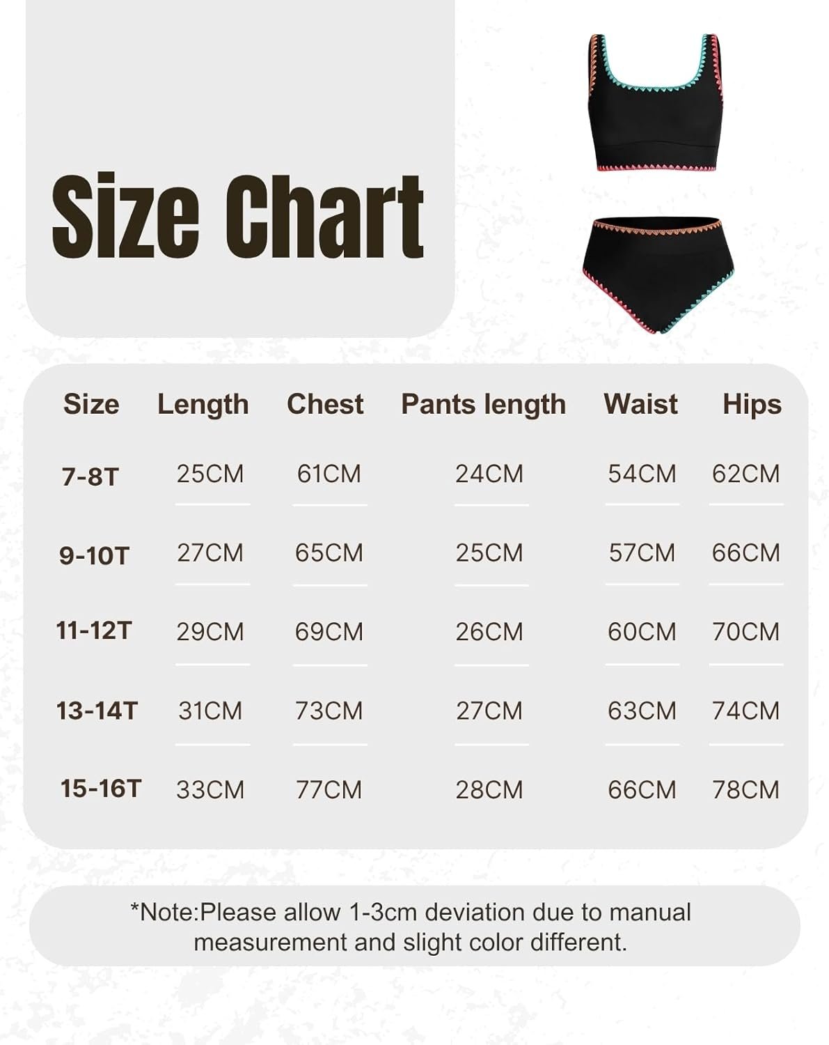 OXUBOAO Maillot de bain deux pièces pour fille – Noir – Bloc de couleurs – Pour adolescentes de 7 à 16 ans