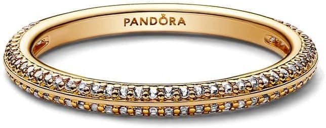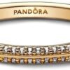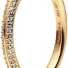 Rewrite De la collection Pandora ME, bague intemporelle pour femme en argent sterling 925 poli, plaqué or selon un procédé spécial Pandora qui protège contre l’oxydation, sertie de petits zircons blancs, largeur de l’anneau 2 mm