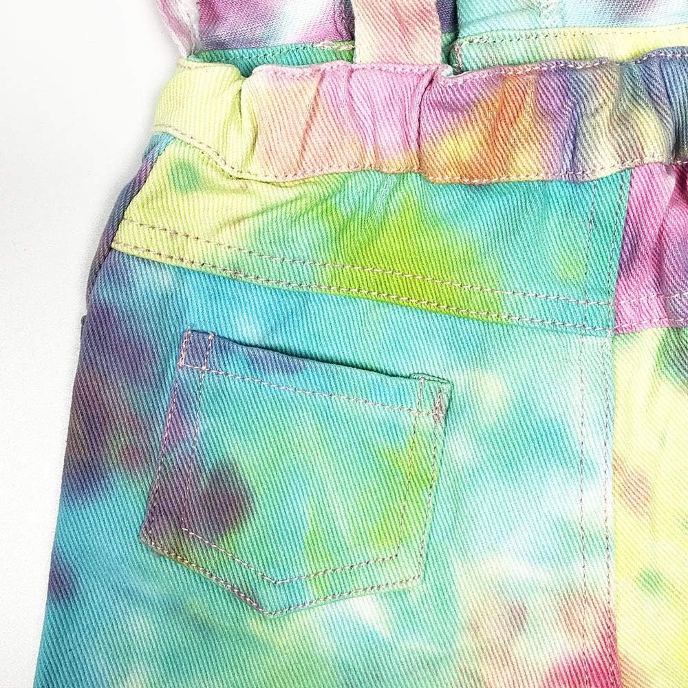 Peacolate 3-10A Enfants Filles Combinaisons et Combinaisons Bavettes Colorées Tie Dye Shorts Bretelles Shorts Jeans Pantalons