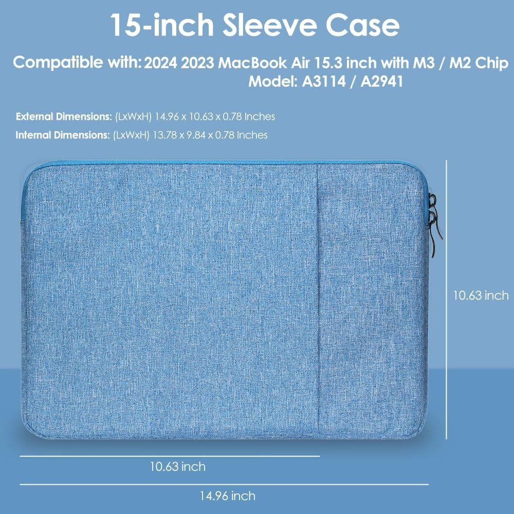 ProElife Housse pour ordinateur portable de 15″ – Pour MacBook Air 15″ 2024 et 2023 avec puce M3 M2 – Housse de transport résistante à l’eau – Pour MacBook Air 15″ 2024 2023 M3 M2 (bleu clair)