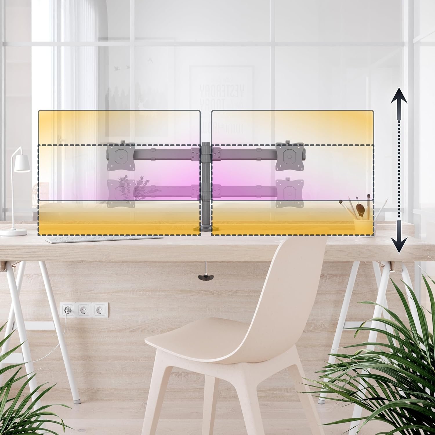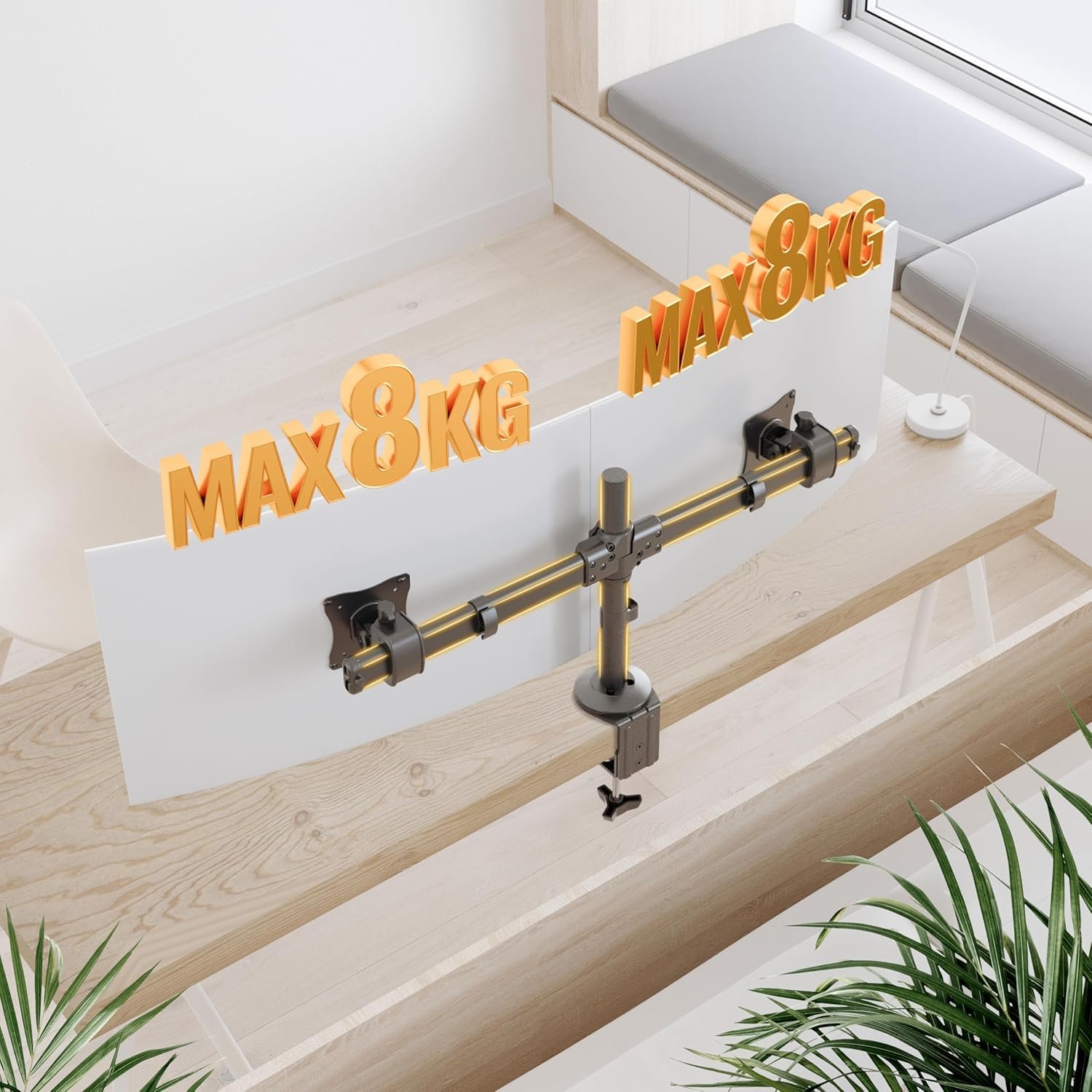 Le support de moniteur offre une grande flexibilité et polyvalence pour améliorer votre espace de travail. Il est compatible avec les écrans de diagonale comprise entre 33 et 68 cm (13″-27″) et prend en charge les normes VESA 75×75 mm et 100×100 mm. La charge maximale est de 8 kg par support.