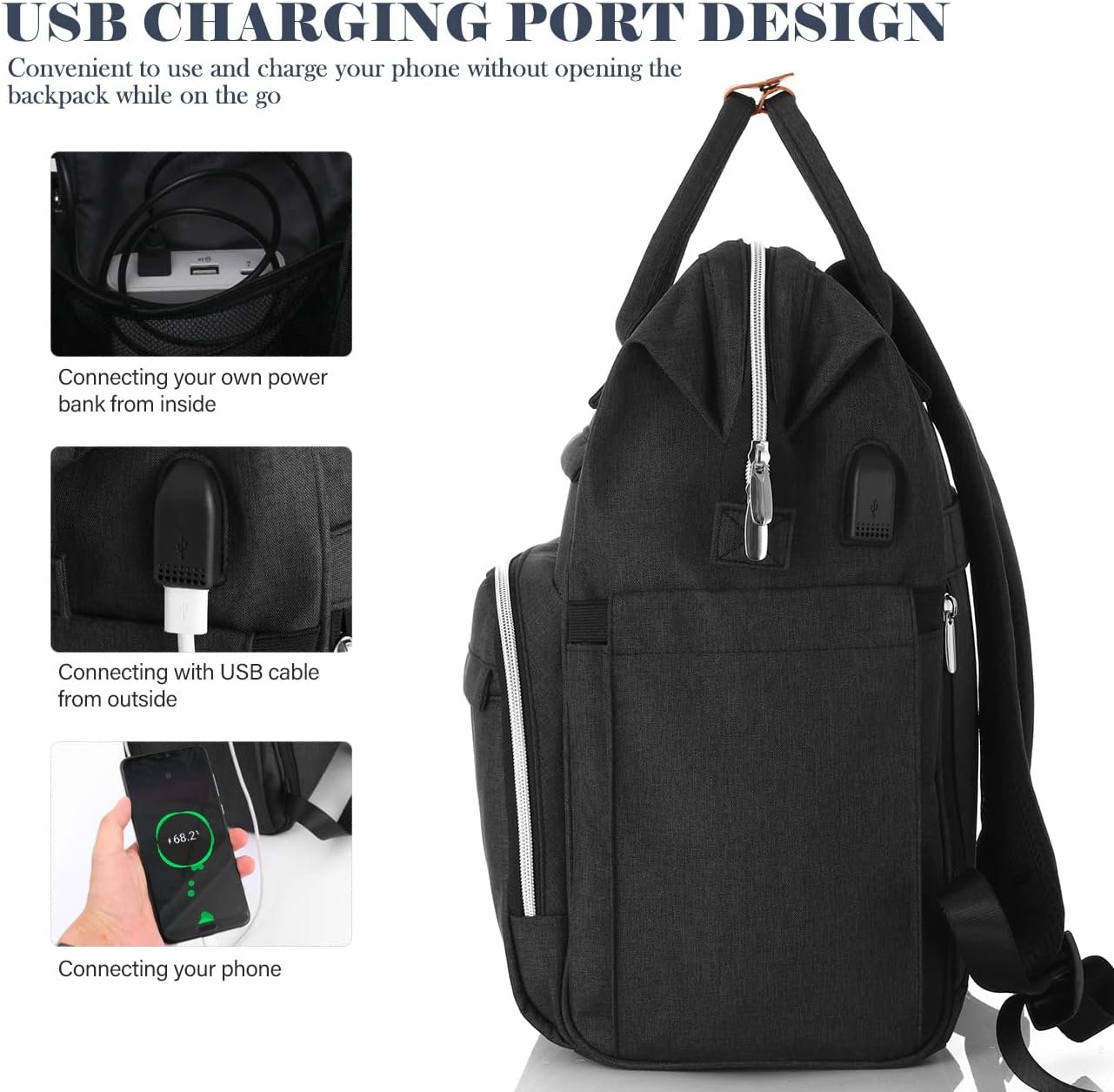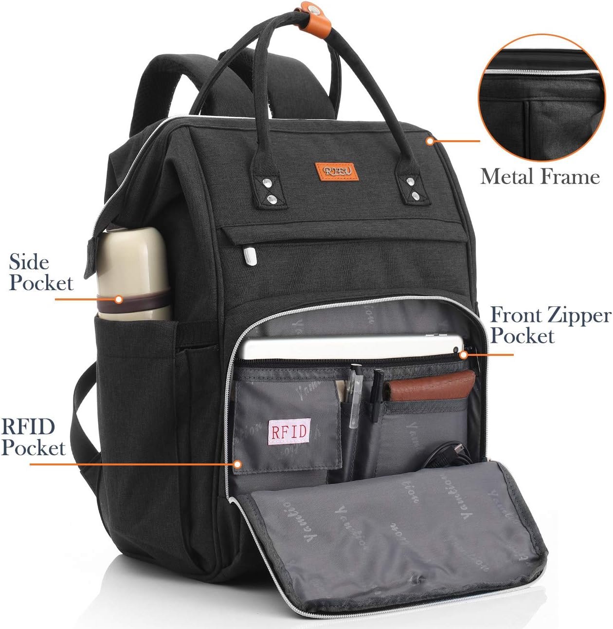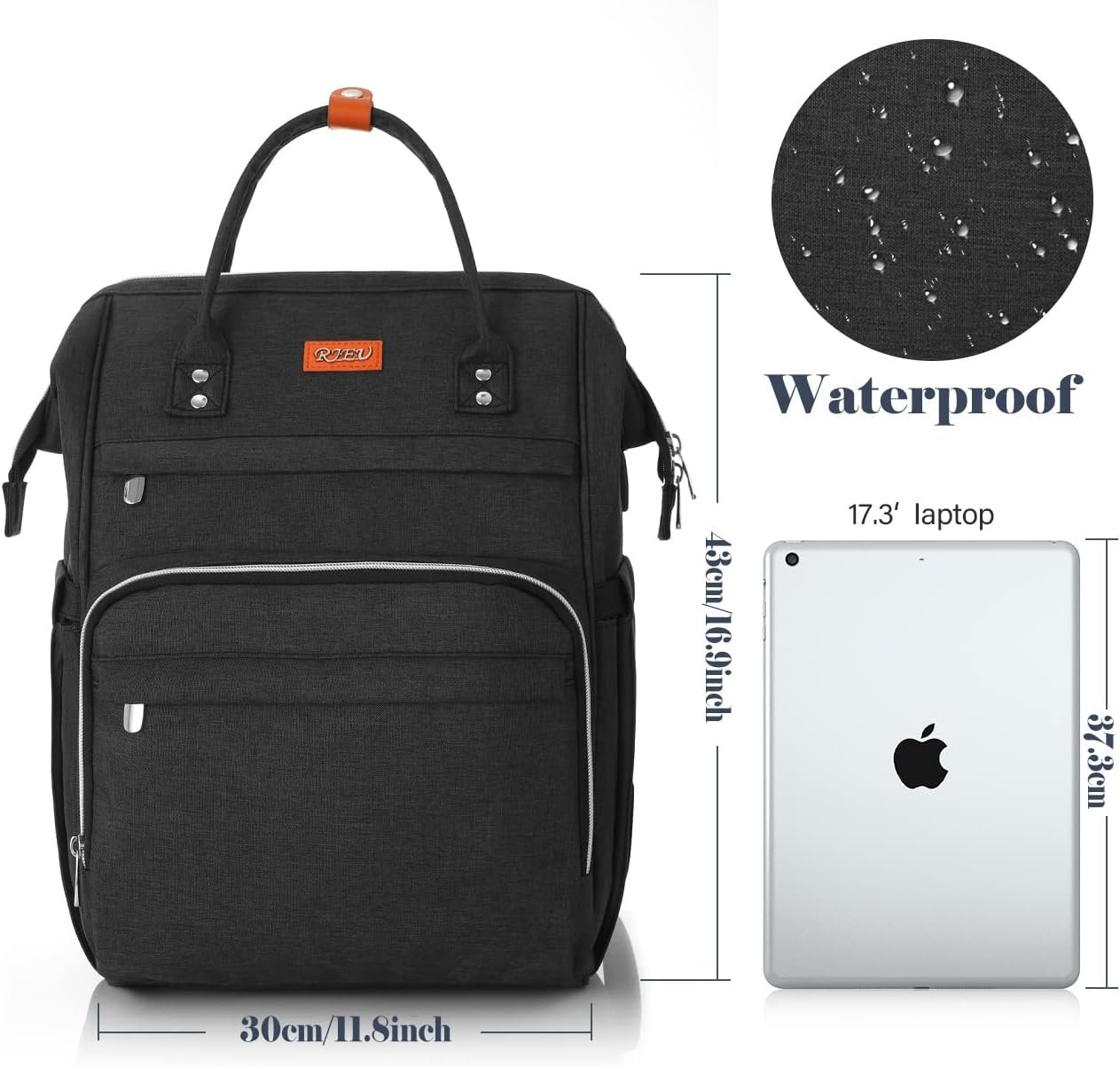 Sac à Dos Femme,Sac à Dos Ordinateur Portable 17,3 Pouces Avec Port de Chargement USB et Poche RFID Pour Collège,école,Travail,Voyage (Noir 17in)
