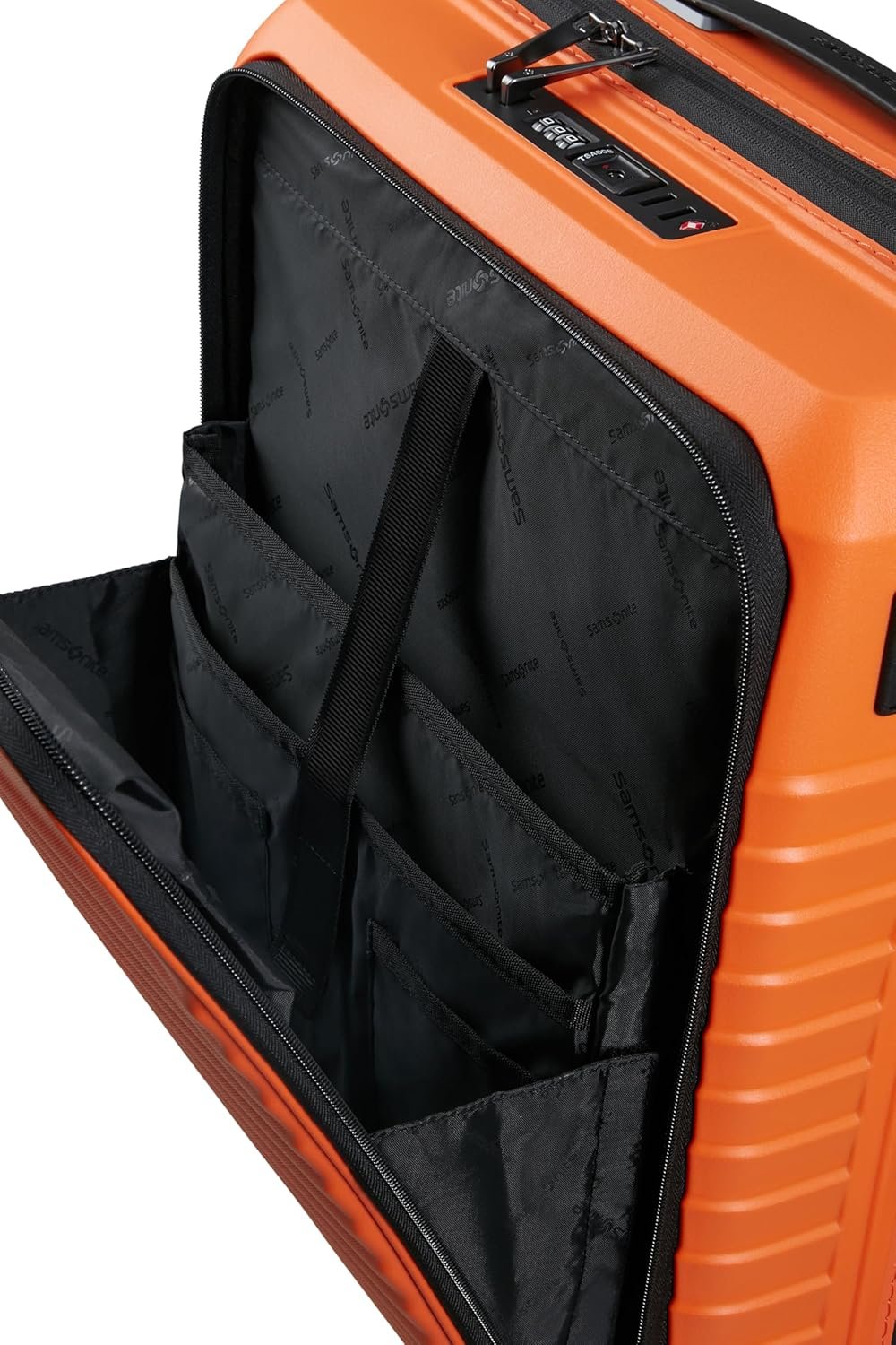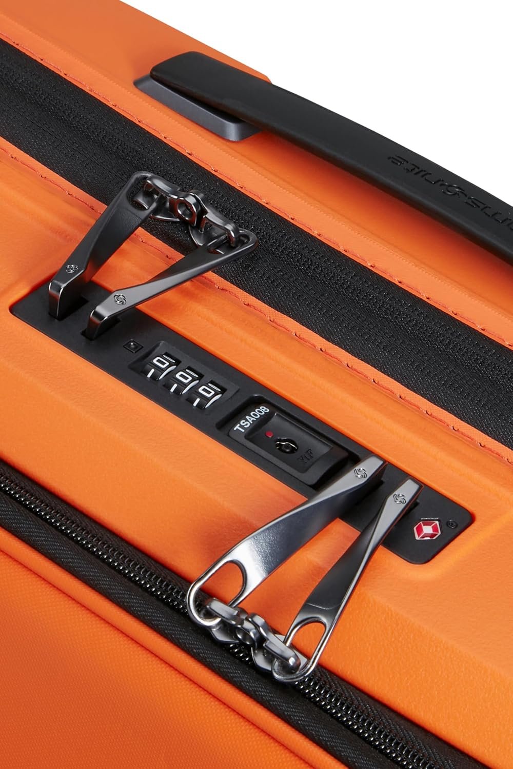 Le Spinner 55 extensible, conçu pour un voyage de 2 jours, se distingue par sa fonctionnalité et sa **sécurité** renforcée grâce à un verrou TSA008 qui permet de sécuriser tous les compartiments. L’intérieur comprend un système de séparation fixe avec deux poches zippées et des sangles d’emballage ajustables, assurant que vos affaires restent bien en place.