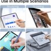 Parfait pour prendre des notes, lire, jouer ou dessiner, ce stylet universel capture vos idées comme sur du papier avec une grande précision. Dans chaque paquet, vous trouverez cinq stylets de couleurs variées, accompagnés de cinq pointes en caoutchouc et trois pointes disques transparentes, pour une utilisation prolongée et polyvalente.