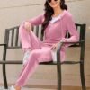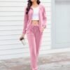 Une marque de mode propose une gamme de vêtements confortables et tendance. Les ensembles de vêtements d’intérieur coordonnés, tels que les combinaisons en velours et les pantalons, sont disponibles dans différentes couleurs. Les femmes peuvent choisir parmi une variété de styles, du look chic au survêtement de gymnastique.