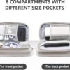 Les dimensions compactes de 22 x 12,7 x 5 cm permettent de le ranger facilement dans un sac à dos ou une valise. Il comporte 6 poches en filet et 2 compartiments avec des bandes élastiques pour organiser vos câbles, chargeurs et accessoires.