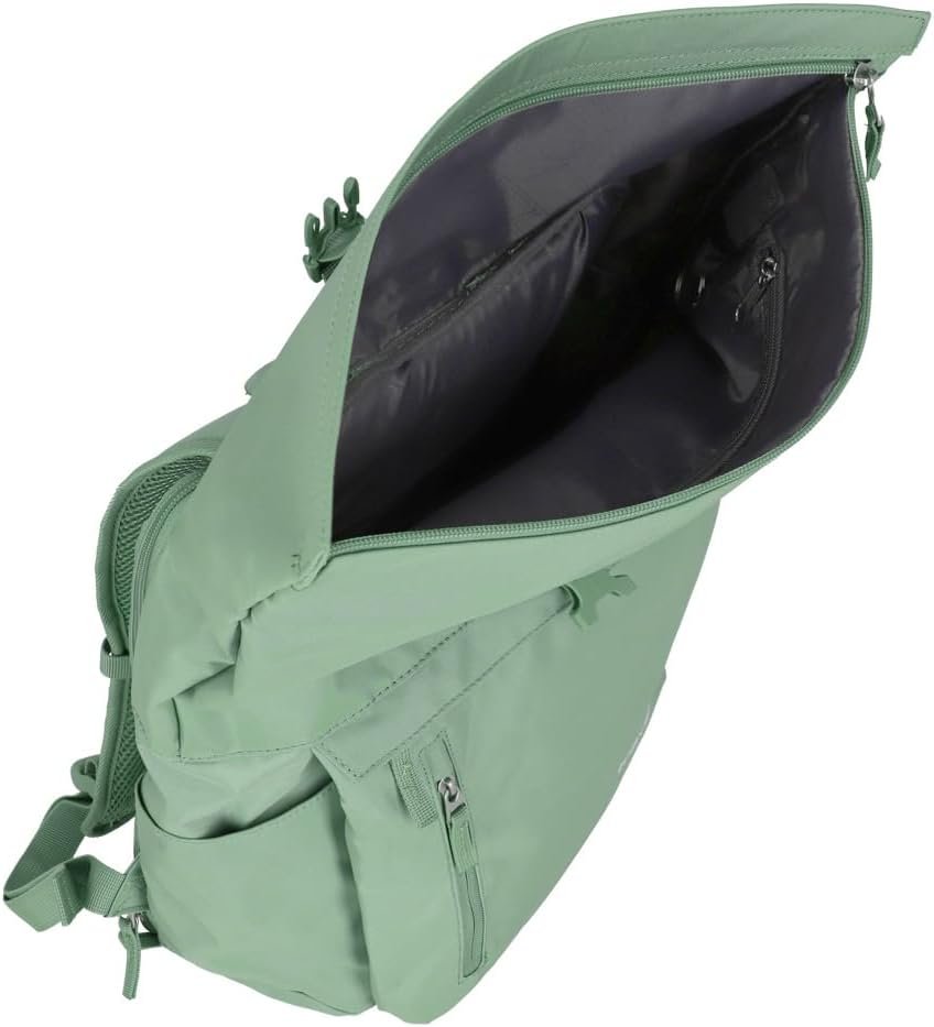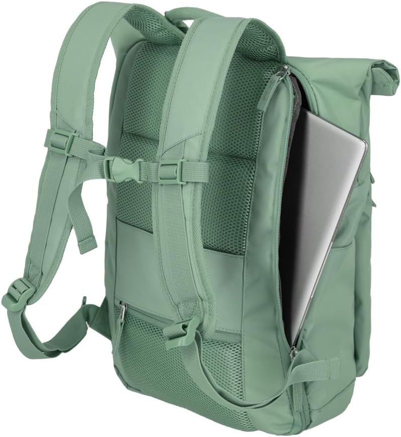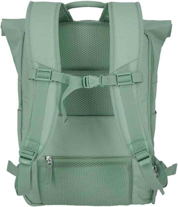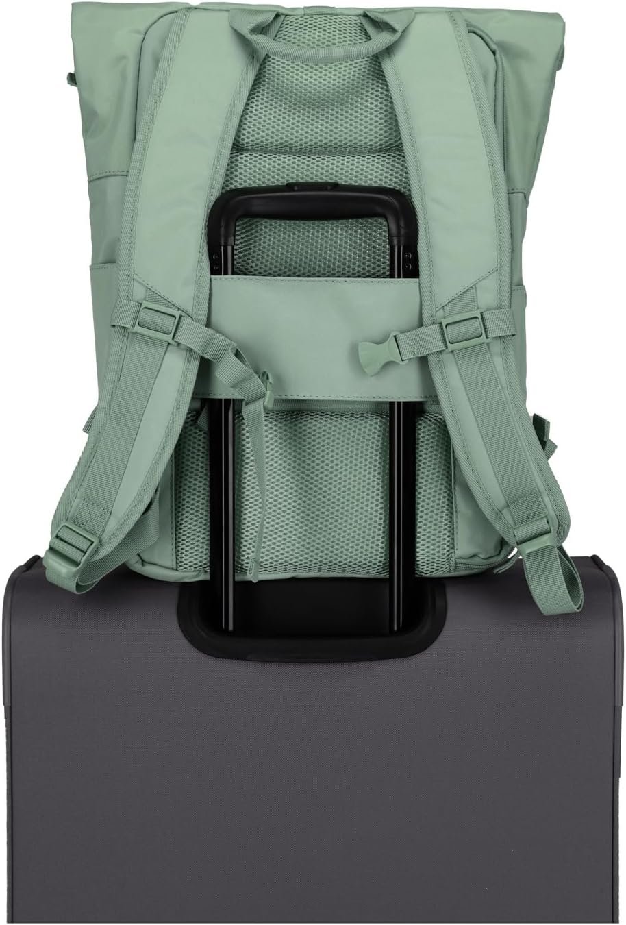 Le sac à dos Rolltop de BASICS combine respirabilité et sécurité grâce à son dos rembourré et sa poche zippée intégrée. Les bretelles ergonomiques avec sangle de poitrine assurent un maintien optimal. Ce modèle inclut une housse pour chariot, le rendant compatible avec les barres de chariot standards.