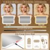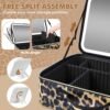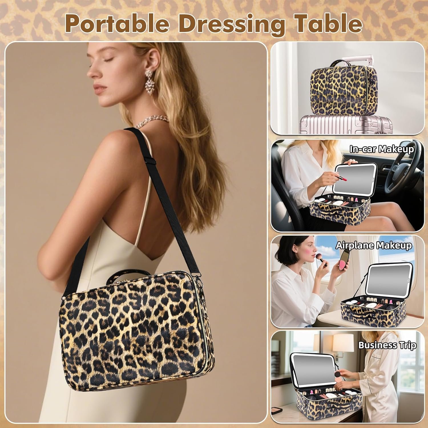 【Miroir amovible amélioré】 Ce grand trousse de maquillage est équipé d’un miroir éclairé amovible qui peut être fixé sur la trousse ou utilisé séparément sur une table. Angles réglables à 30°, 60° et 90°, idéal comme miroir de bureau. 【Capacité extra-large】 Dimensions : 38 cm x 28 cm x 14 cm — Emportez tous vos essentiels beauté et cosmétiques partout avec vous grâce à cette grande trousse de voyage. Dotée d’une poignée, d’une bandoulière amovible et d’une bande de fixation pour valise pour un transport facile. Parfait pour les maquilleurs professionnels ou amateurs. 【Éclairage professionnel à 3 couleurs】 Le miroir de maquillage 4K plein écran propose 3 RÉGLAGES DE COULEUR avec LUMINOSITÉ AJUSTABLE. Appuyez longuement pour régler la luminosité (10% à 100%), touchez légèrement pour changer la température de couleur (lumière froide, naturelle ou chaude) pour un maquillage parfait, que ce soit pour une soirée, les transports ou le quotidien. 【Coiffeuse portable révolutionnaire】 Avec son grand compartiment de rangement, sa planche dédiée aux pinceaux et son éclairage professionnel, cette trousse de maquillage voyage vous offre une liberté totale. Fabriquée en simili-cuir délicat, elle est imperméable, résistante aux chocs, anti-poussière et facile à nettoyer. 【Batterie rechargeable 2000mAh & Compartiments ajustables】 Avec une utilisation quotidienne de 30 minutes, une charge complète dure environ 1 semaine. Câble Type-C inclus. Rechargeable via ordinateur ou batterie externe.Les séparateurs en EVA amovibles vous permettent de personnaliser l’agencement intérieur pour organiser vos produits comme vous le souhaitez.