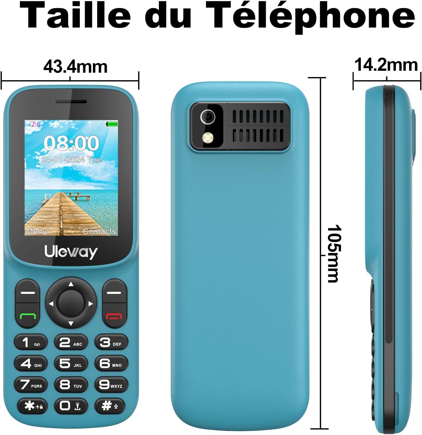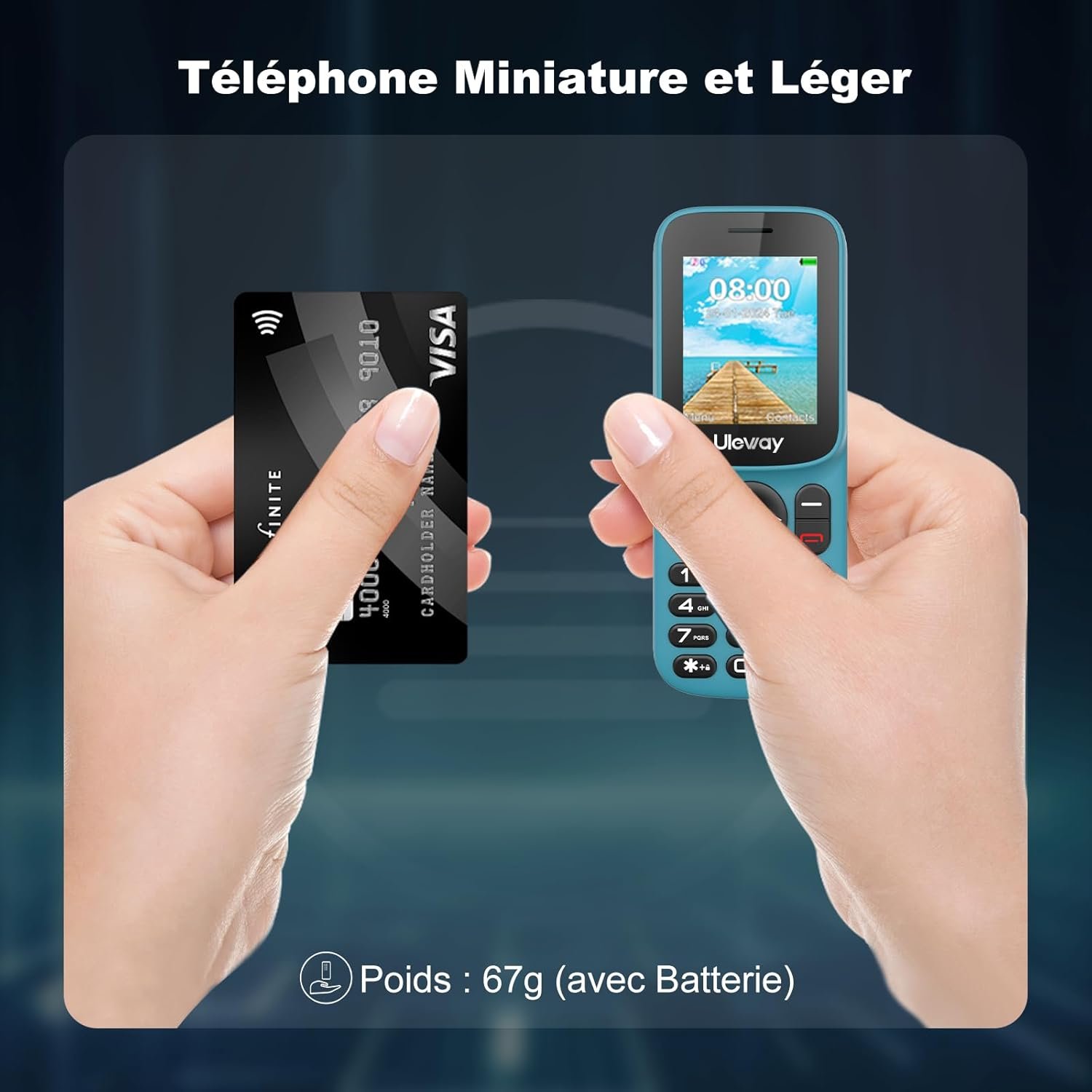 Téléphone portable à touches compact et léger, pesant seulement 67g (batterie incluse) et mesurant 1,7″ x 0,55″ x 4,25″. Facile à glisser dans une poche ou un sac, il convient parfaitement aux seniors, enfants ou comme téléphone d’appoint lors de déplacements ou d’activités sportives.