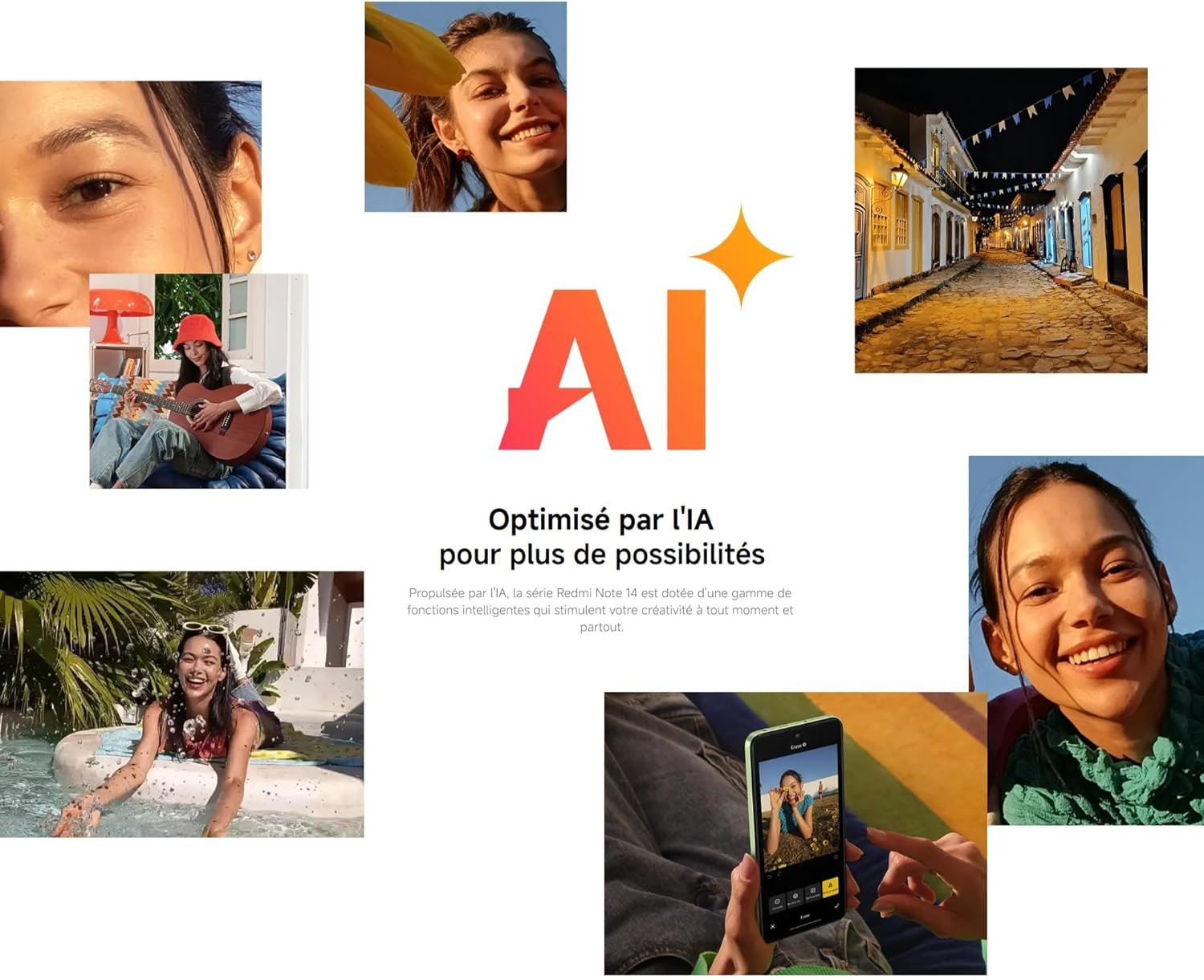 Le Redmi Note 14 8+128 Go en noir se distingue par un appareil photo principal doté de l’intelligence artificielle et d’une résolution remarquable de 108 MP, parfait pour des clichés nets et détaillés. Profitez d’une grande autonomie grâce à une batterie de 5500 mAh, compatible avec la charge rapide 33 W pour une utilisation prolongée au quotidien. Ce smartphone est équipé d’un processeur MediaTek Helio G99-Ultra à technologie 6 nm, assurant une performance fluide et efficace.