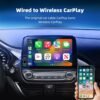 Pour une connexion facile, assurez-vous que votre autoradio d’usine prend en charge CarPlay ou Android Auto. Notre dispositif permet une connexion sans fil via Bluetooth et WiFi. Il est compatible avec la plupart des véhicules équipés du câblage d’origine pour ces fonctions, à l’exception de certains modèles. Les téléphones compatibles incluent ceux avec iOS 10 et supérieur, ainsi que les appareils Android 11 et supérieur.