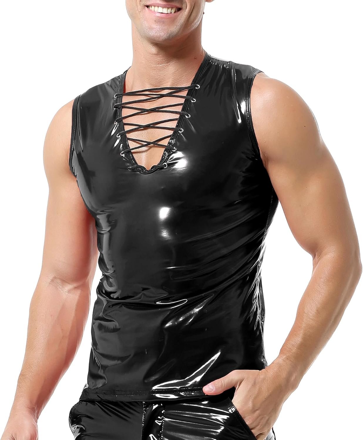 Ce gilet sans manches pour hommes en simili-cuir est une excellente option pour diverses occasions, telles que des soirées de rencontre, des jeux de rôle ou des sorties en boîte de nuit. Il est disponible en plusieurs couleurs, notamment noir et rouge vif.