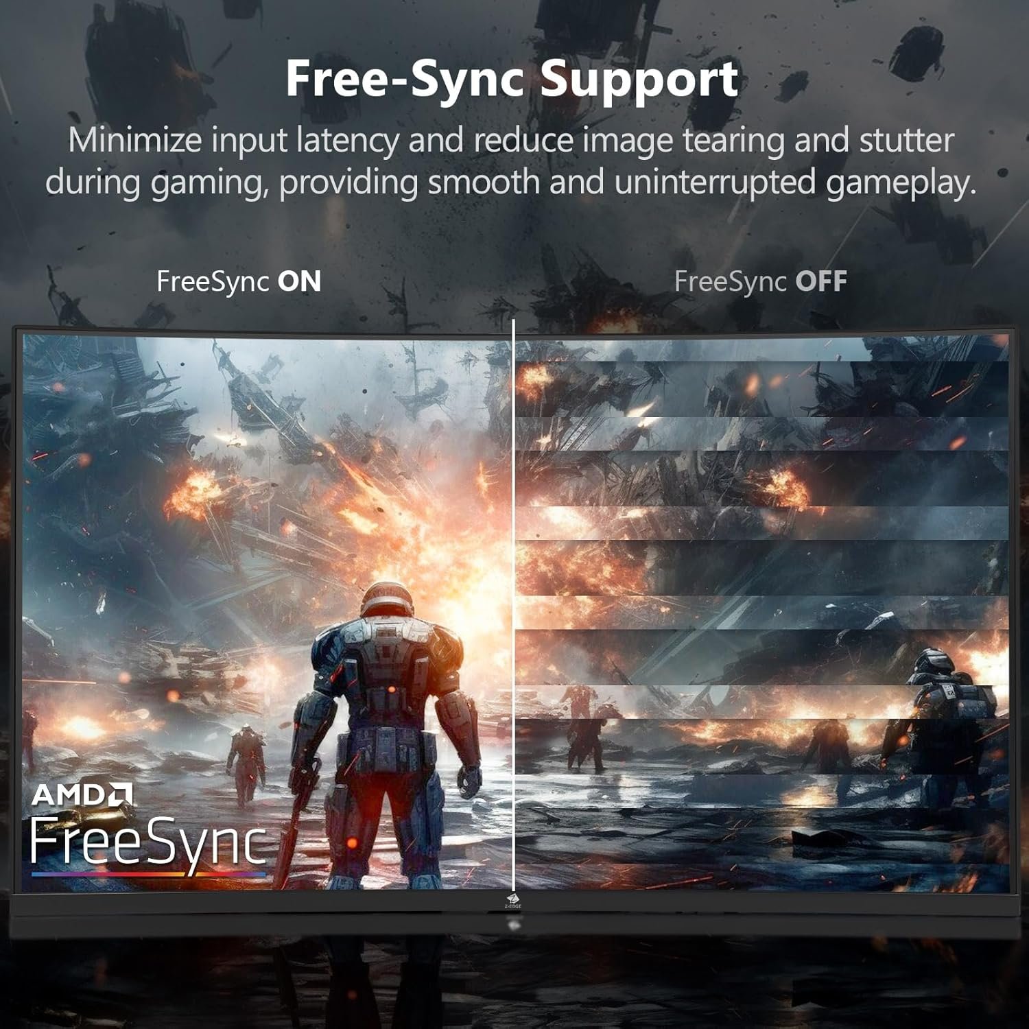 FreeSync & Lumières Respirantes RGB: La technologie Premium FreeSync résoudre les problèmes de déchirure, de bégaiement et de décalage de l’écran de jeu causés par la synchronisation verticale et le faible taux de rafraîchissement. Le moniteur est équipé de lumières respirantes RGB pour améliorer la beauté visuelle et l’immersion grâce à des effets d’éclairage dynamiques, prenant en compte à la fois les fonctions décoratives et pratiques
