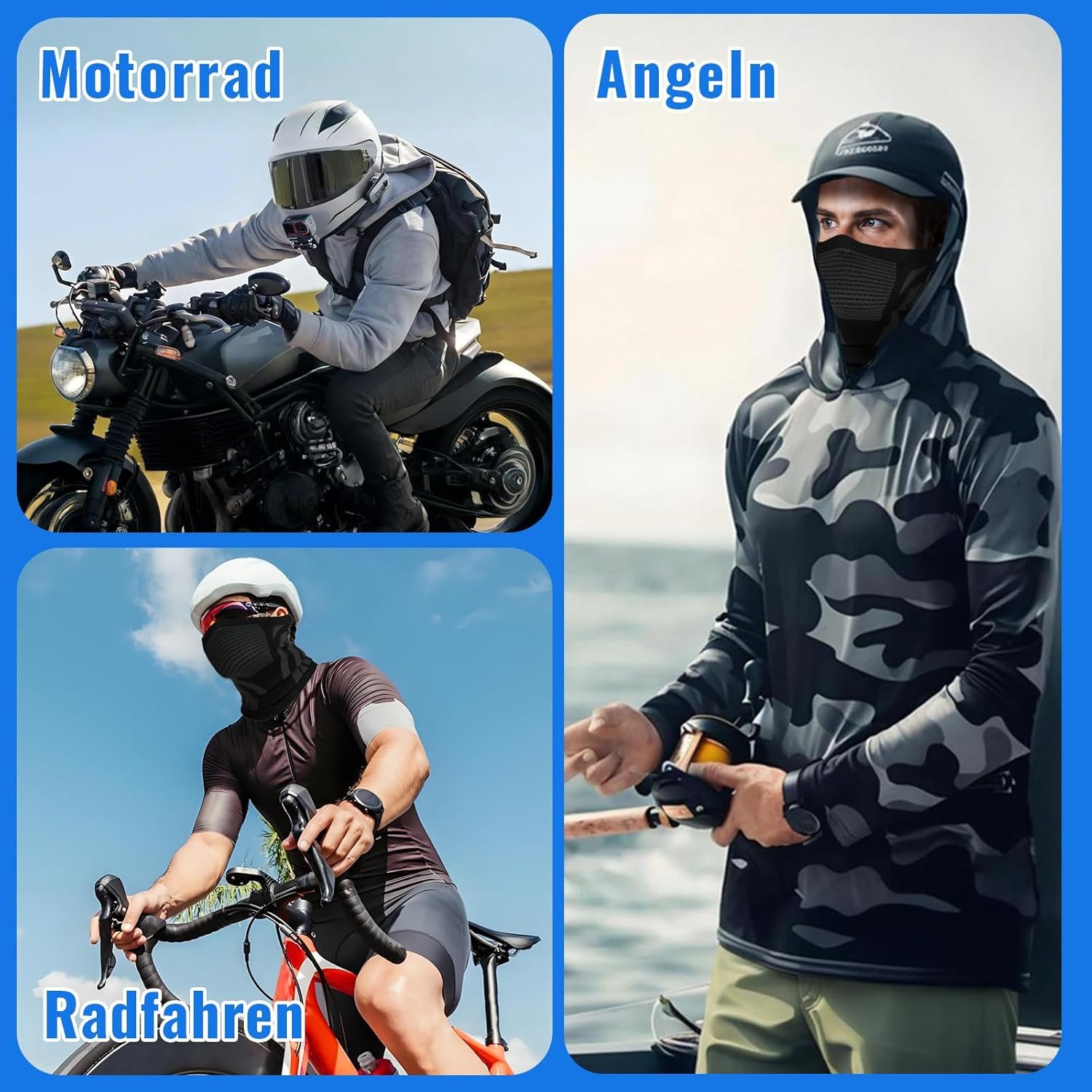 Ils conviennent à des activités comme le ski, le cyclisme ou la pêche, et sont particulièrement confortables à porter sous un casque. Leur structure à mailles serrées permet une respiration libre tout en protégeant contre les particules de saleté.