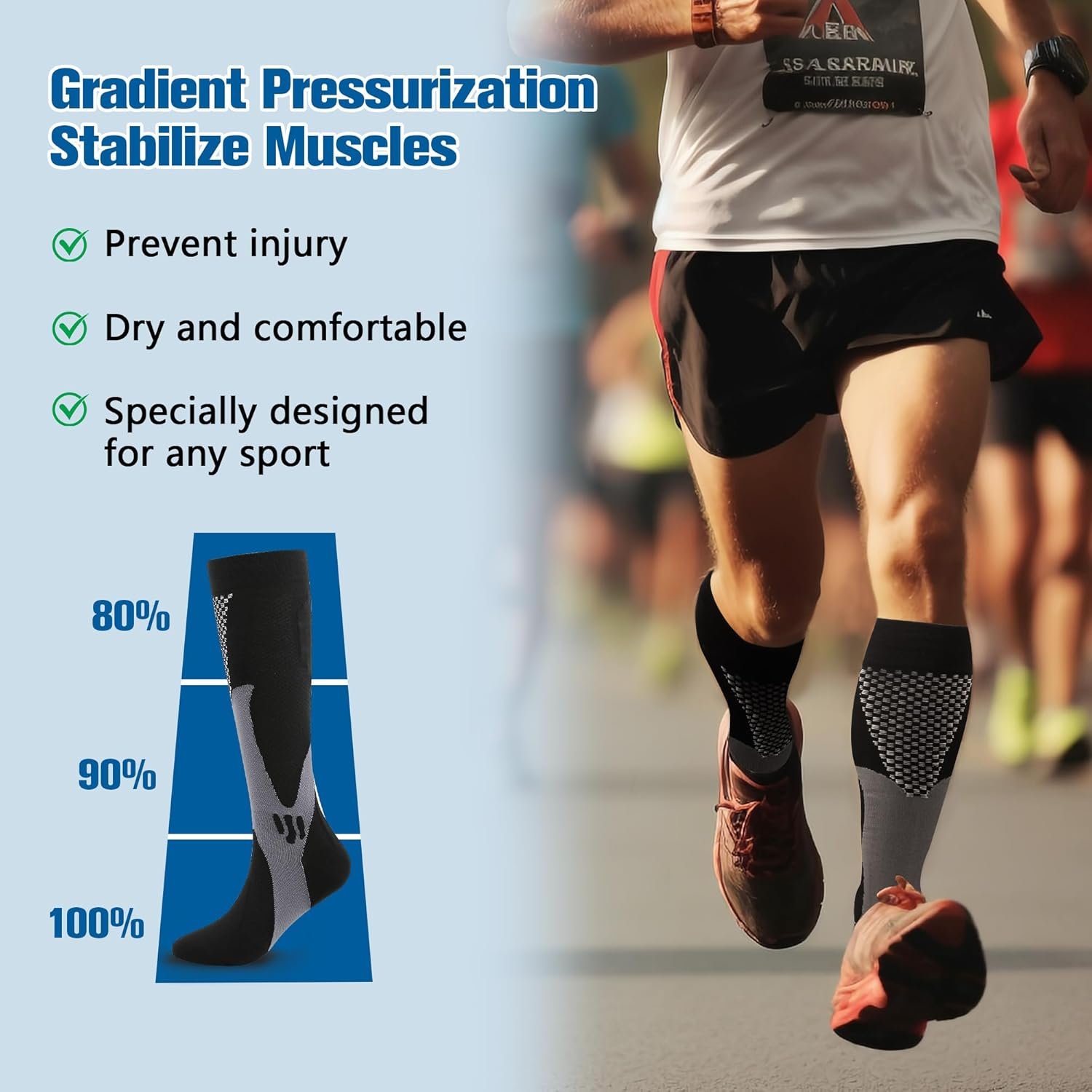 Les chaussettes de compression pour le sport professionnel offrent un confort et une protection accrue pour les jambes. Elles présentent une conception de compression graduelle, protégeant les muscles des blessures et augmentant l’apport en oxygène. Les chaussettes stabilisent également la position des articulations, réduisant les vibrations musculaires et les blessures accidentelles.